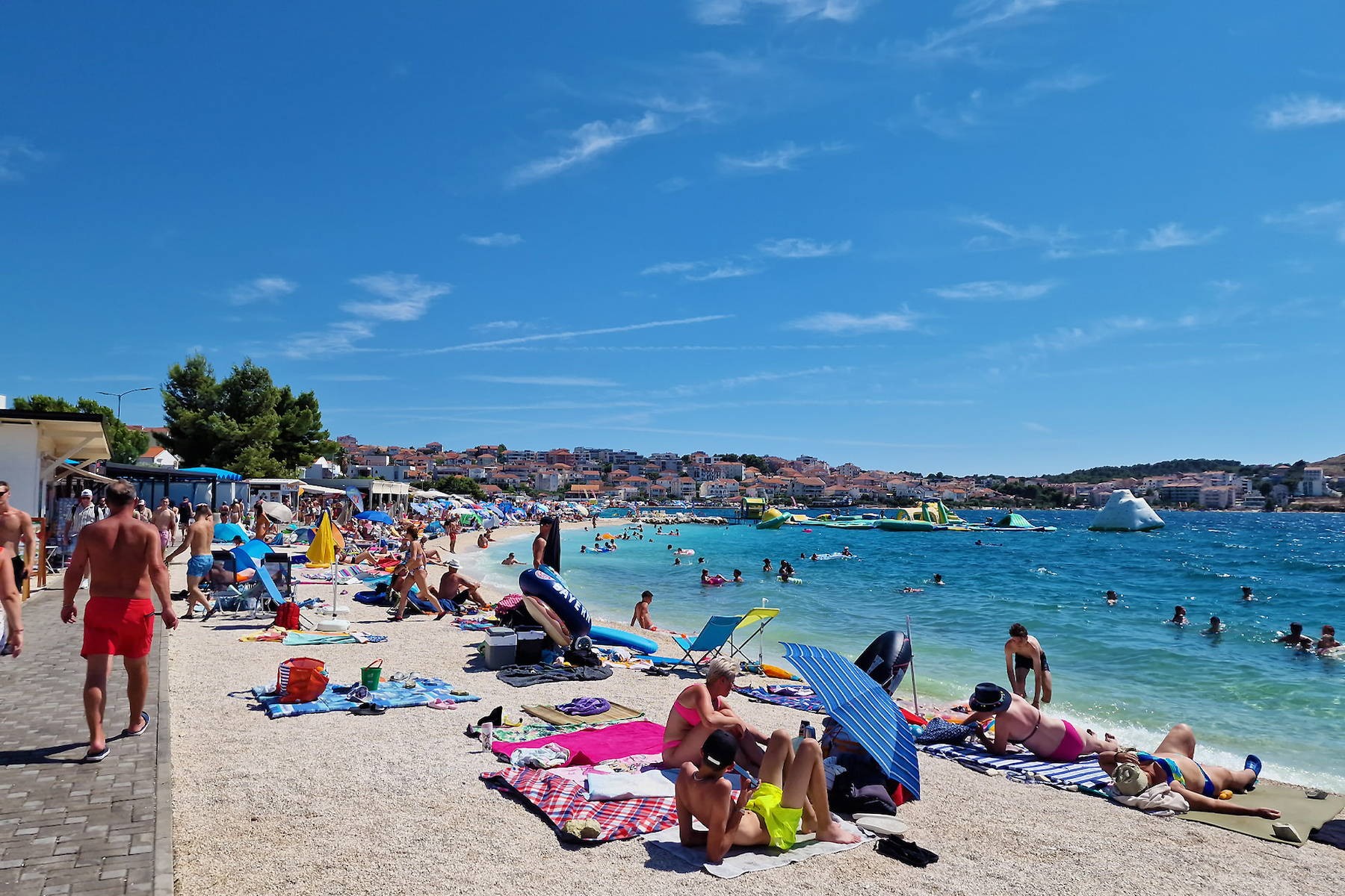 Lokalizacja i komunikacja: Wyspa połączona jest z lądem (miastem Trogir) dwoma mostami, co zapewnia wygodny dojazd samochodem.