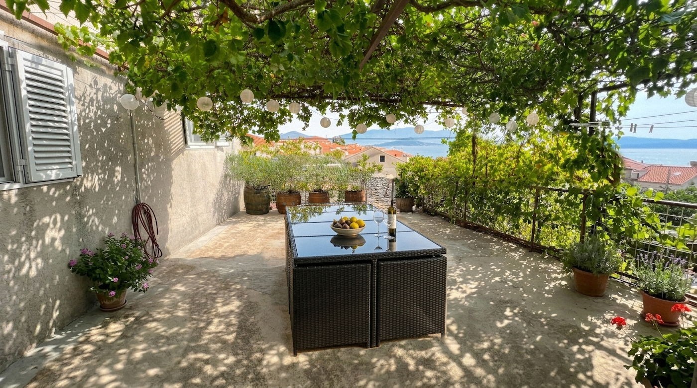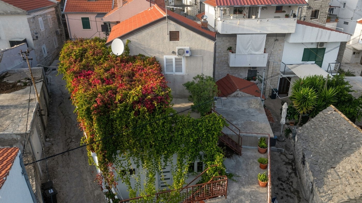 Na sprzedaż: Dom z pięknym wnętrzem, wspaniałym tarasem i dodatkowym apartamentem. Nieruchomość położona jest w malowniczej, historycznej części wyspy Čiovo, zaledwie 400 metrów od morza.